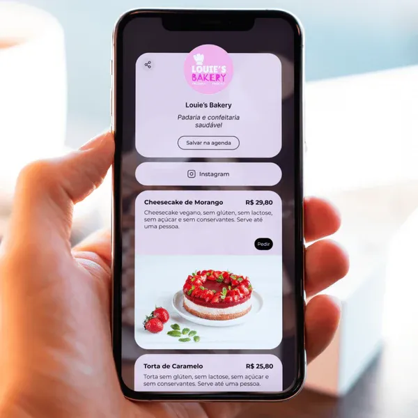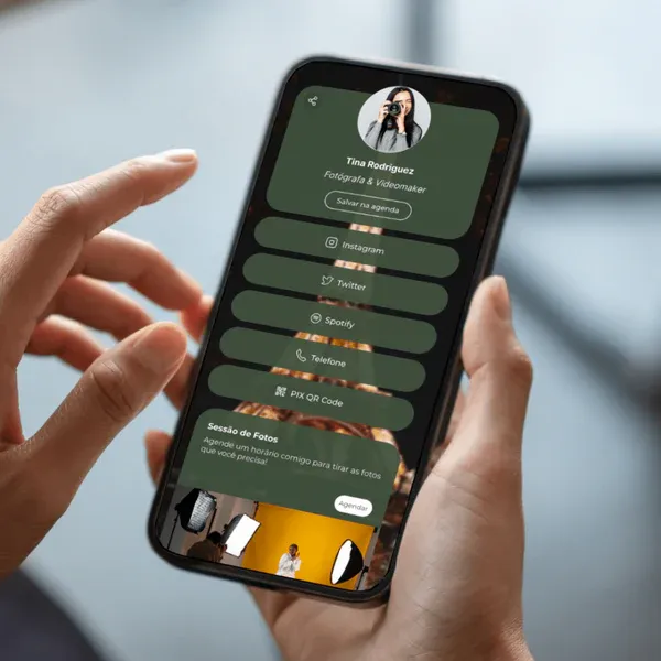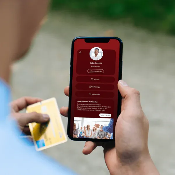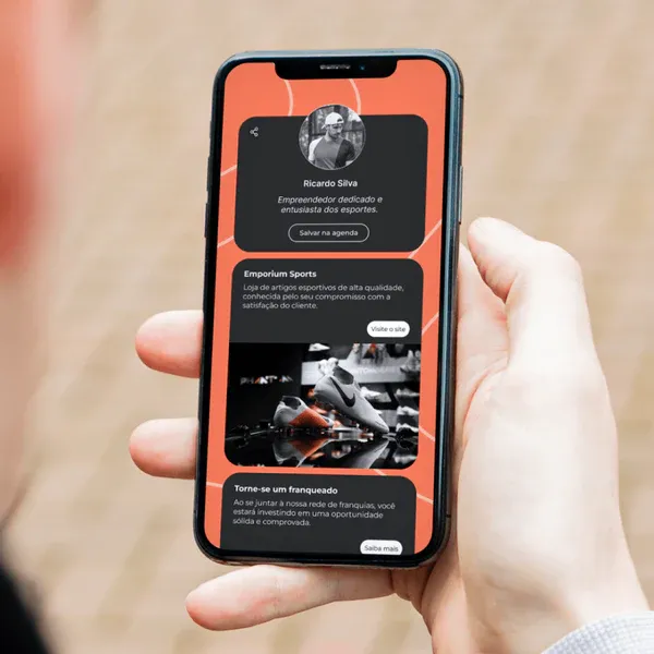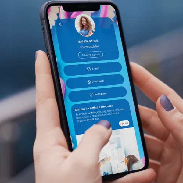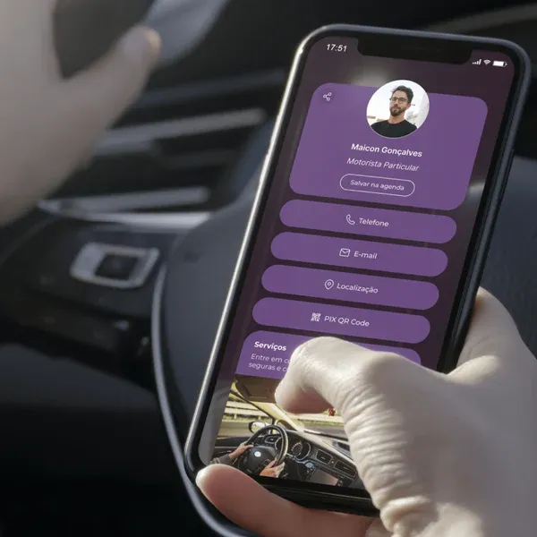 O seu cliente salva seu cartão digital completo na agenda dele com apenas um clique.