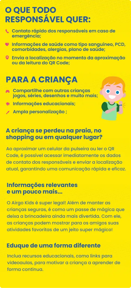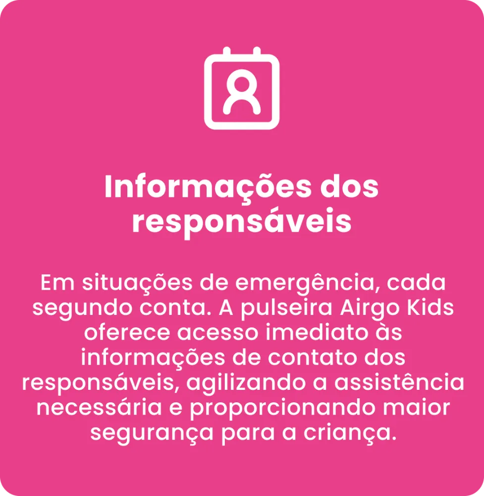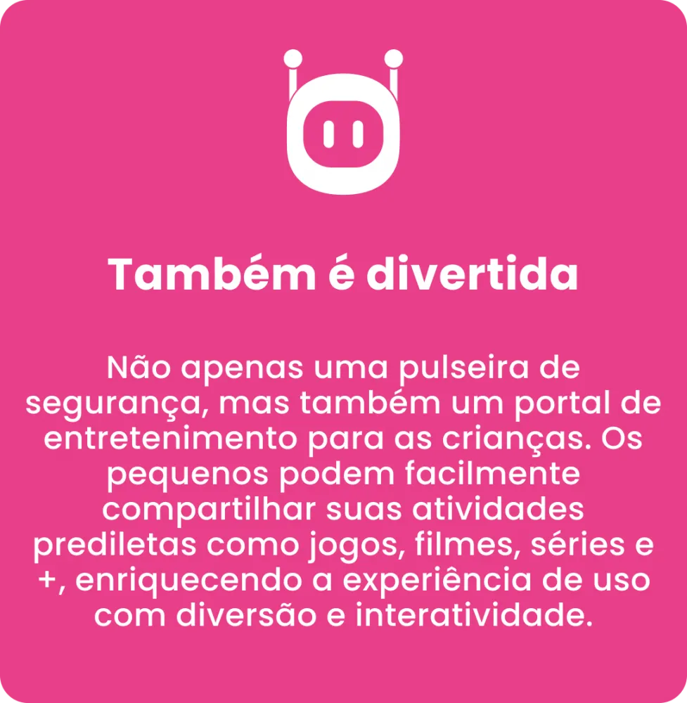 Pulseira projetada para unir tecnologia e segurança na rotina das crianças. Com um design ajustável, ela se adapta perfeitamente tanto aos pulsos dos pequenos quanto aos dos mais grandinhos.
